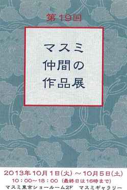 10:00 ~ 18:00(最終日は16:00まで) 今年で19回目を迎える『マスミ 仲間の作品展』が開催されます。 マスミ道場の講師、受講生、マスミのお客様など、マスミに関わる方々のすばらしい作品がマスミギャラリーに集まります。 表装だけでなく和綴じ本・金銀箔・陶芸など様々な作品を出展していただき、ご来場のお客様からも好評を得ております。 是非、ご高覧いただきますよう、お待ち申し上げております。