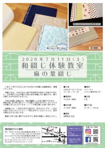 - 和綴じ本は、1000年以上昔の平安時代の初めに中国から伝わり、江戸時代には江戸職人の技と粋が和綴じ本に集約され、様々な綴じ方が生み出されました。今回の和綴じ体験では、『麻の葉綴じ』を学ぶ事ができます。表紙の紙、糸や角に使うパーツを選んで頂きますので、オリジナルの和綴じ本に仕上がります。ノートや張込帳にお使い頂けます。体験後には、ご自宅で好きな紙や糸、好きなサイズで、ご自分の使いやすいオリジナルノート等をお作りいただいたりと、制作の幅も広がると思います。簡単にお作り頂く事ができますので、是非お気軽にご参加ください。