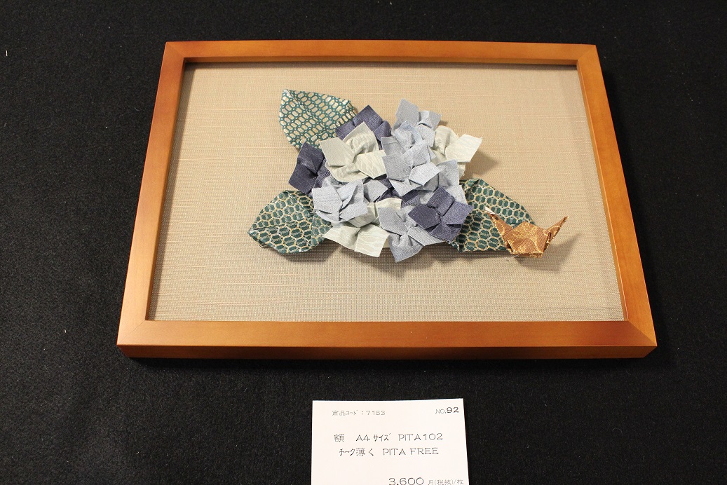 今回は立体作品なので布地部分に貼りつけ、アクリルを外して額装しました。