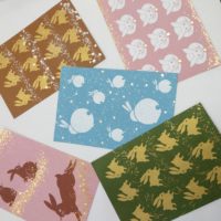 金銀箔の体験教室を開催いたします。 今回の体験では、色付きのハガキ(5枚)に、雲母摺り(きらずり)をしたり、金銀砂子や金野毛を施し、美しい干支のハガキをお作り頂きます。2023年は「卯」の図…