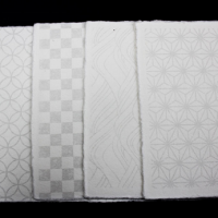 17486 越前和紙のカード 2枚入・・・400円+税 手漉きの風合いのある、柄入りの耳付きカード2枚組セットが入荷いたしました。 柄は『市松』『桐麻』『光琳波』『星七宝』の…