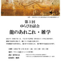第三回 ゆらびお話会 「龍のあれこれ・雑学」 2024年(令和六年)は、干支(えと)で言うと甲辰(きのえたつ)の年に当ります。 この度の講演では、辰年に因んで、龍についてのお話しを致しましょ…