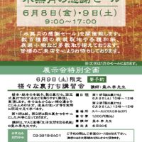 日頃のご愛顧に感謝し、<2018 水無月の感謝セール>を開催いたします。 新柄の表装裂地や各種和紙、表装小物など多数取り揃えております。 ●上記日程は、来店者様のみの日程となります。 ●お電…